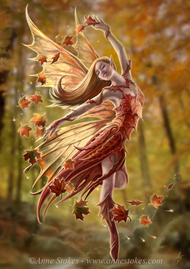“The slender girls wore crunchy skirts of fall leaves…” (Art by Anne Stokes) |